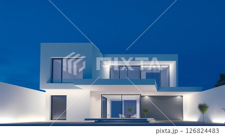 Modern concrete house with large windows and minimalistic design located in a quiet suburban area