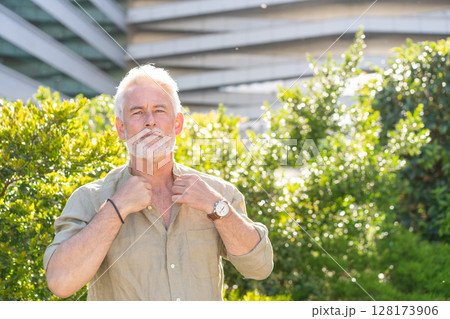 青空と桜と戸建ての街並み 河川敷 コピースペース 正方形