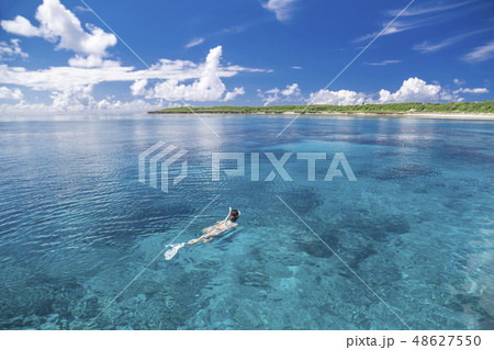 サンゴ礁の海でシュノーケリング