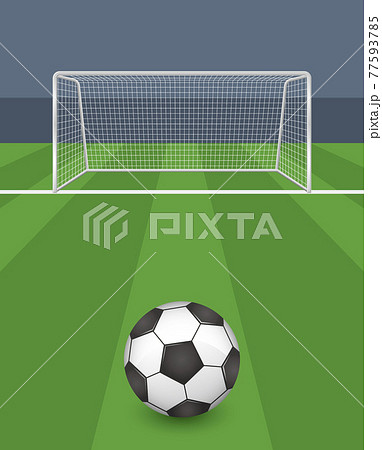 フィールド内に置かれているサッカーボールのイメージイラスト(ベクター画像)