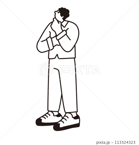 上を見て考えている男性、線画、ベクター