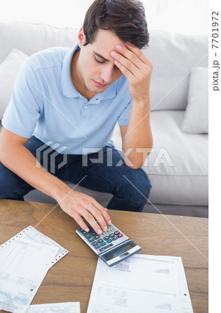 Fearful man doing his accounts