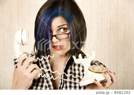 Pretty young woman wrapped in a phone cord