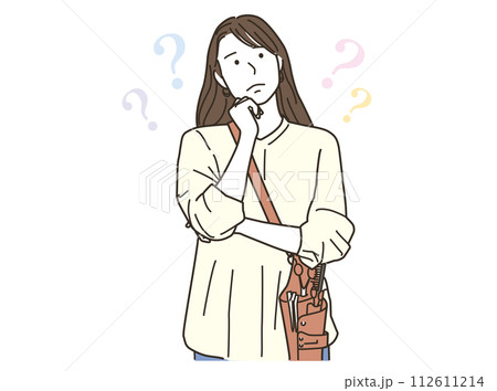 悩むポーズをする若い女性の美容師