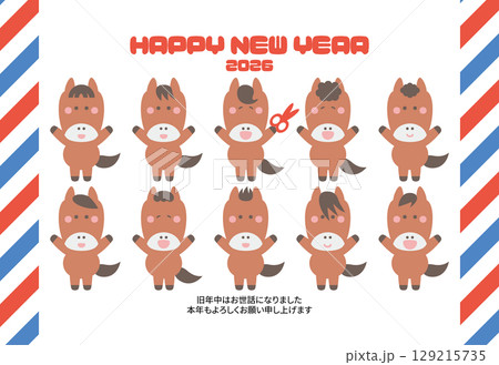 色々なヘアスタイルの馬のイラスト年賀状(横)