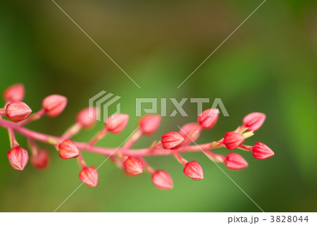 自然 植物 リュウキュウアセビ、赤い粒々の蕾。本来分布していなかった石垣島の公園にて