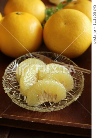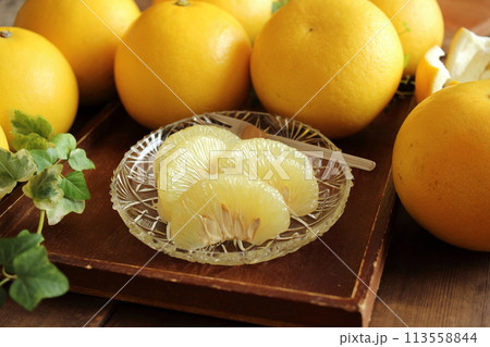 柑橘系の果物、文旦。新鮮でジューシーな果実。