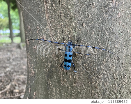 ルリボシカミキリ_カミキリムシ_青色
