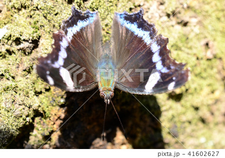日向で休むタテハチョウ科の蝶「ルリタテハ」