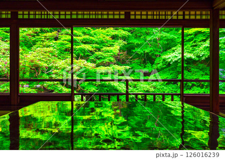 新緑のもみじと瑠璃光院 瑠璃の庭 京都府京都市