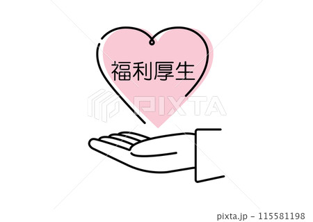 福利厚生とかかれたハートを掲げるビジネスパーソンの手のイラスト