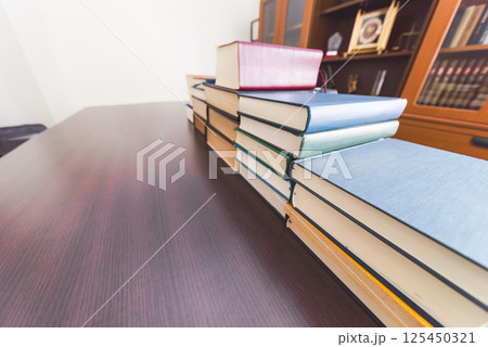 分厚い専門書のある部屋