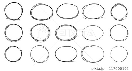 Set of sketches of drawn circular line. A set of ellipse doodles. Sketch ovals, bubbles to circle and highlight text. Pencil or pen graffiti bubble or balloon