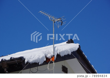 積雪の屋根とアンテナ 雪屋根とテレビののアンテナ