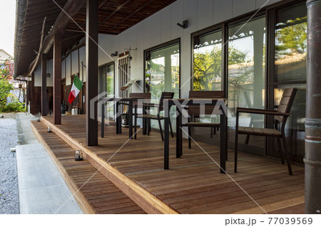 一戸建て (一軒家 外観 乗用車 軽自動車 外構 玄関 ドア 窓 二階建て 南欧風 門柱 瓦屋根)