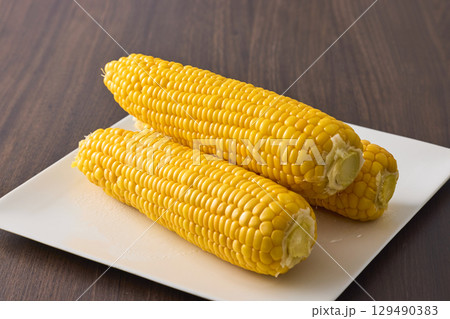 湯気が上がったゆでとうもろこし