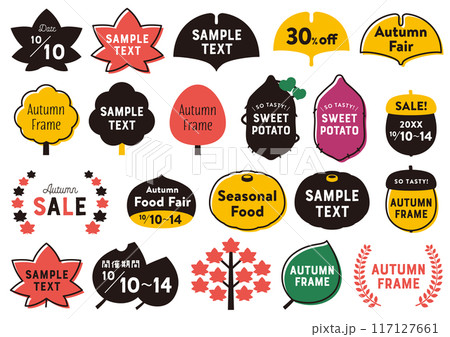 果物や野菜や木の実の美味しい秋の味覚シリーズイラストセットとベクターフレーム素材