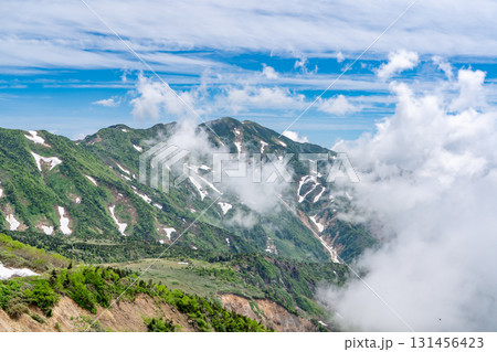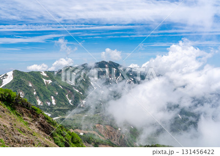〔石川県白山市・7月〕白山連峰 甚之助避難小屋に迫る雲海 夏の風景