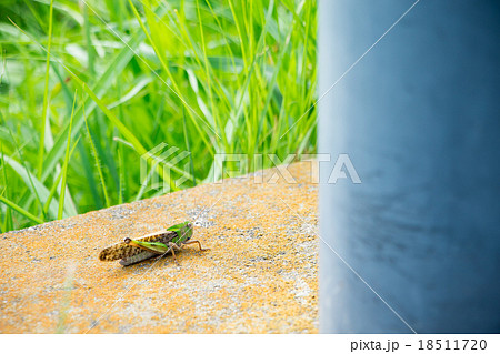 トノサマバッタ バッタ とのさまばった 殿様飛蝗 草食昆虫 バッタの画像素材 緑の背景にばった
