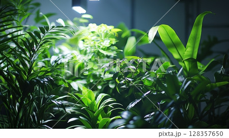 Lush green leaves create vibrant and refreshing backdrop, perfect for nature lovers. rich foliage adds sense of tranquility and life to any space. Green Building Materials concept