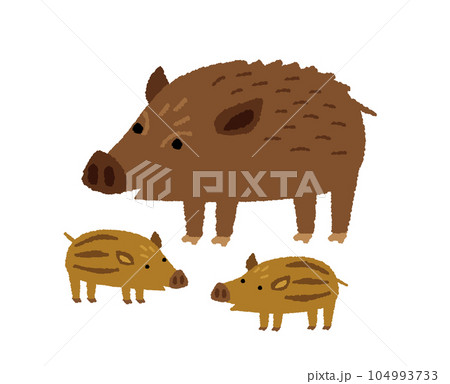 リュウキュウイノシシ親子の手描きイラスト