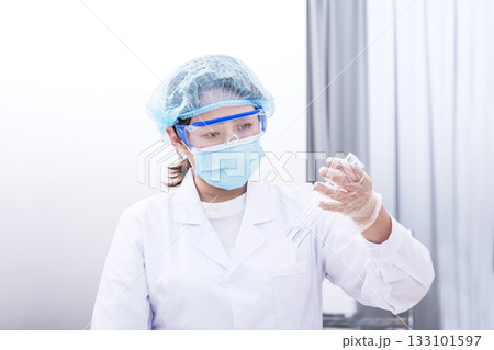 研究する研究員 実験する研究員 試験管を持つ女性 イメージ素材