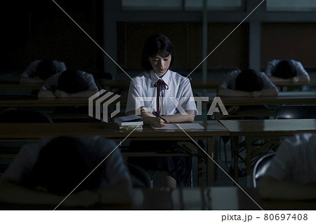 真剣に勉強をする女子高校生のポートレート