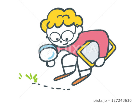肩や背中に鳥を乗せている男の子 ストックイラスト素材