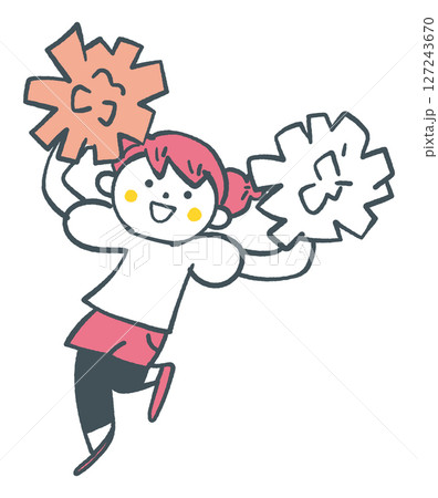 ポンポンを振って応援する小学生の女の子 ストックイラスト素材