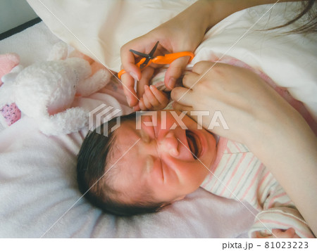 生後6日目(爪切りを嫌がる新生児)