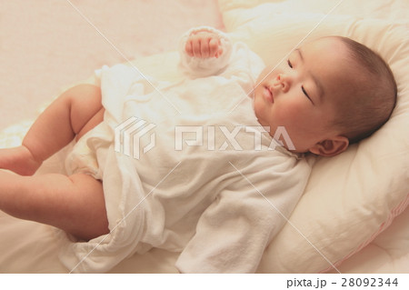 寝てる赤ちゃんの全身、女の子、生後4ヶ月、0歳