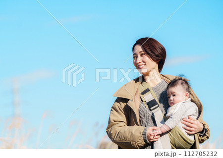 赤ちゃんを抱く綺麗なママ