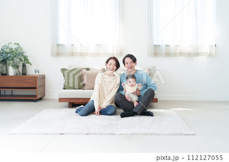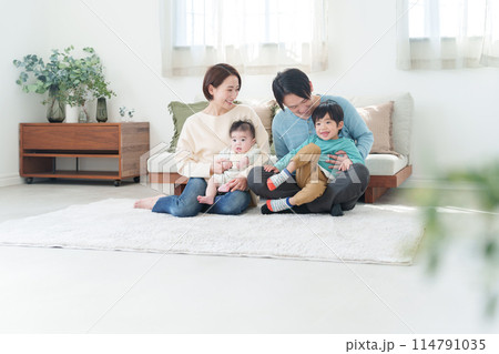 リビングでくつろぐ若い家族