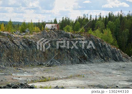 The deserted quarry is surrounded by a beautiful and lush forest landscape that captivates the eyes