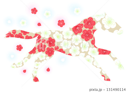 走る馬と梅のイラスト