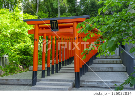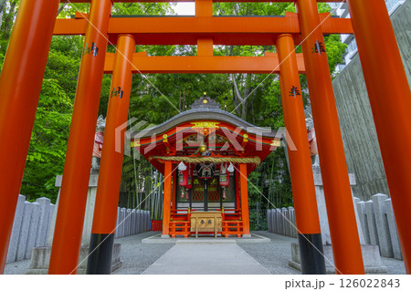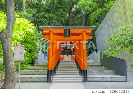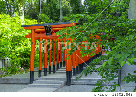 稲荷神社の赤い鳥居(生田神社 境内/兵庫県神戸市中央区)