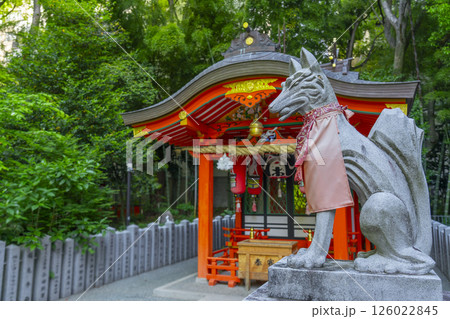 生田神社境内に鎮座する稲荷神社と狛狐