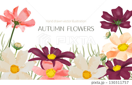 水彩で描いたコスモスのフレーム
