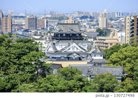 名鉄東岡崎駅に続くペデストリアンデッキから見下ろした岡崎の街並み[乙川河川緑地/愛知県岡崎市]