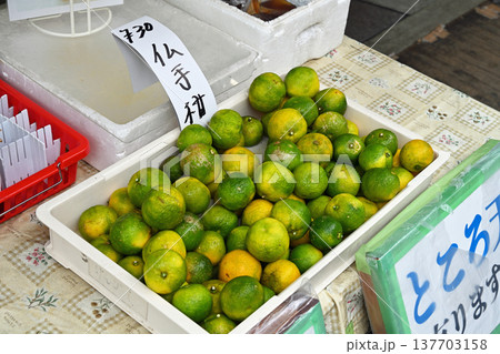 高知名物の仏手柑が並ぶ市場の店頭 酢みかんとして愛される地元の旬の味覚