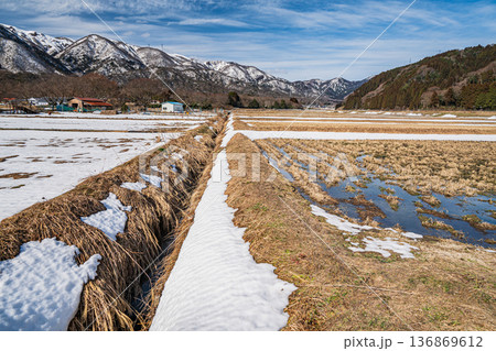 残雪の田園風景 滋賀県高島市マキノ町