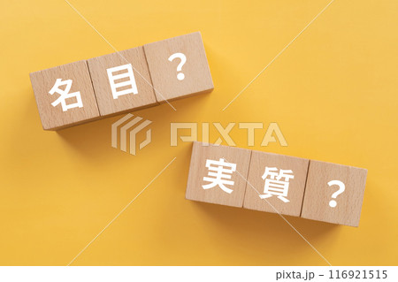 名目?実質?と書かれたブロック
