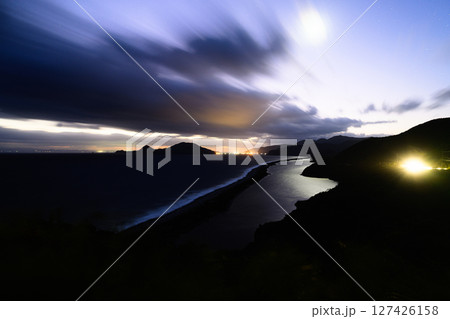 月光を浴びる長目の浜 田之尻展望所 甑島の風景