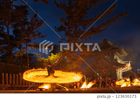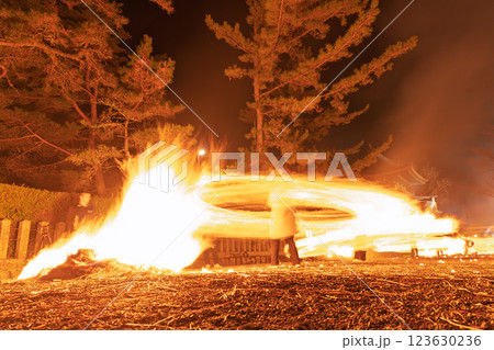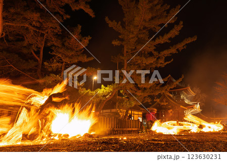 勇壮に振り回される炎 春を呼ぶ阿蘇の火まつり!”阿蘇神社の農耕祭事”(阿蘇神社)阿蘇市一の宮町