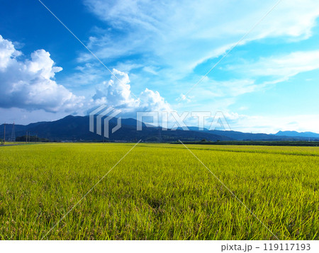 爽やかな夏空の下で綺麗な喜多方市の田園風景爽やかな夏空の下で綺麗な喜多方市の田園風景