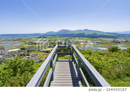 《熊本県》青空と阿蘇谷の田園風景・田子山展望所