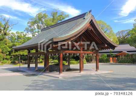 【福岡県】晴天下の宗像大社辺津宮 本殿 宗像大社 辺津宮 宗像大社辺津宮 本殿 拝殿 本社 世界文化