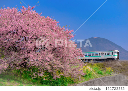 日田彦山線の河津桜と気動車