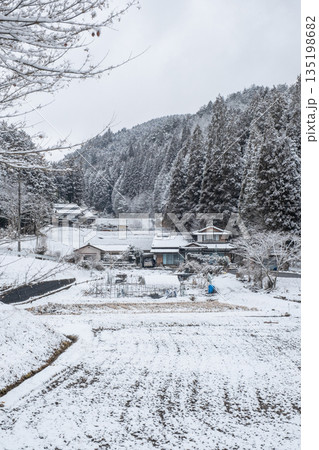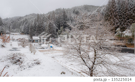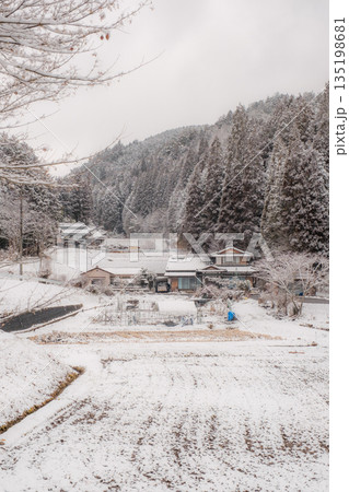 京都府南丹市美山町雪積もるかやぶきの里の撮影したもの