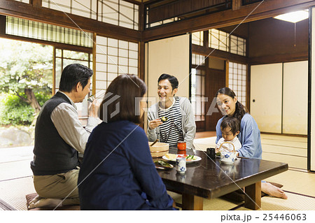 実家へ帰省した家族とおばあちゃんで囲む正月の食卓